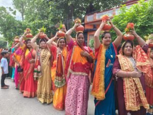 कथा से पूर्व नगर में निकली भव्य कलश यात्रा,